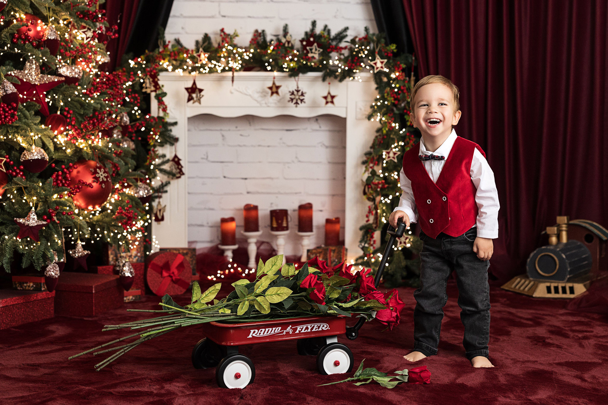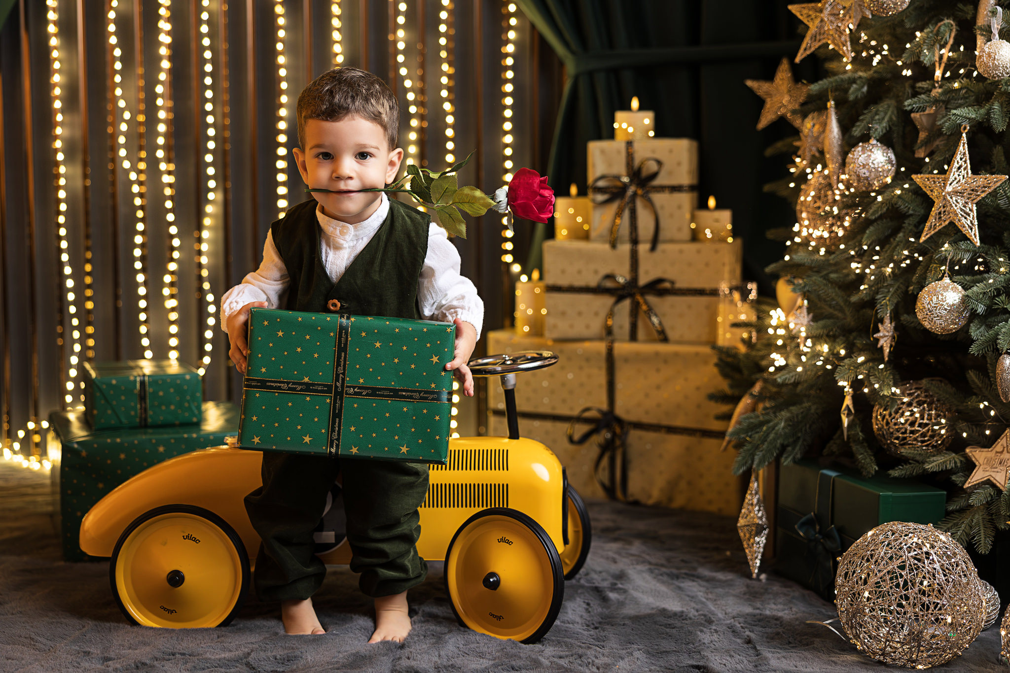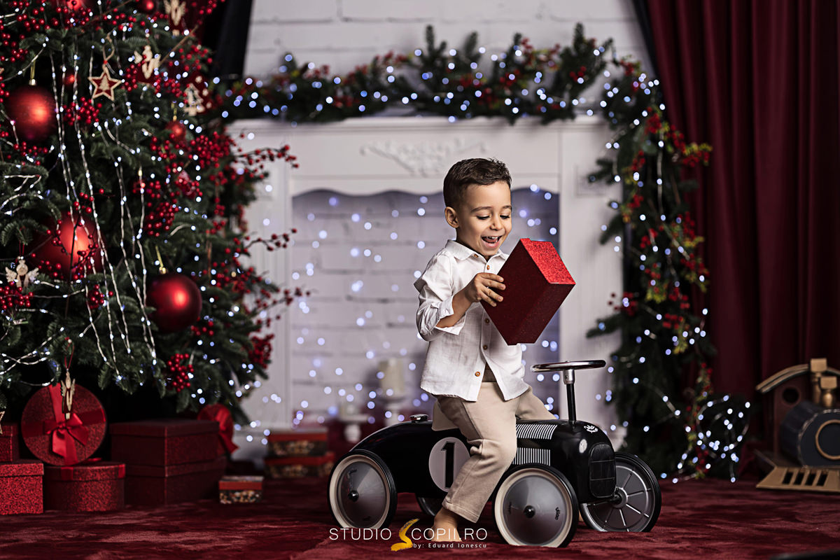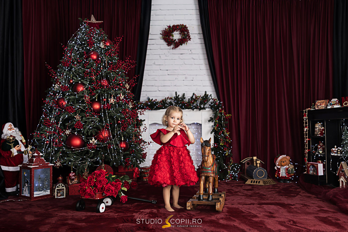 Studioul nostru oferă și ținute pentru copii cu vârste între 1 și 5 ani, atât pentru fetițe, cât și pentru băieței, alese cu grijă pentru a se potrivi perfect decorului și atmosferei Crăciunului.